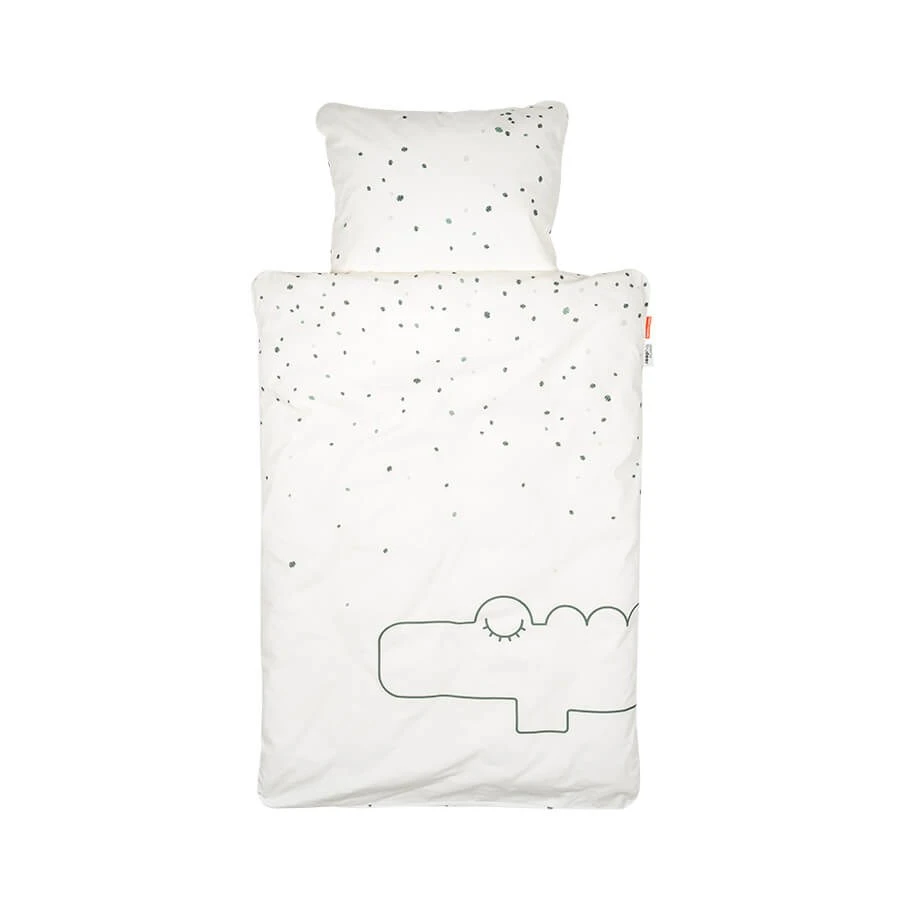 Deze dekbedovertrek croco junior green van het merk Done By Deer geeft de finishing touch aan de kinderkamer! Door de stijlvolle print krijg het bedje een unieke uitstraling. Overtrek en bijpassende kussensloop zijn voorzien van een rits waardoor je het bedje makkelijk kan opmaken. Verder is het dekbedovertrek gemaakt van hoogwaardig materiaal dat comfortabel aanvoelt.