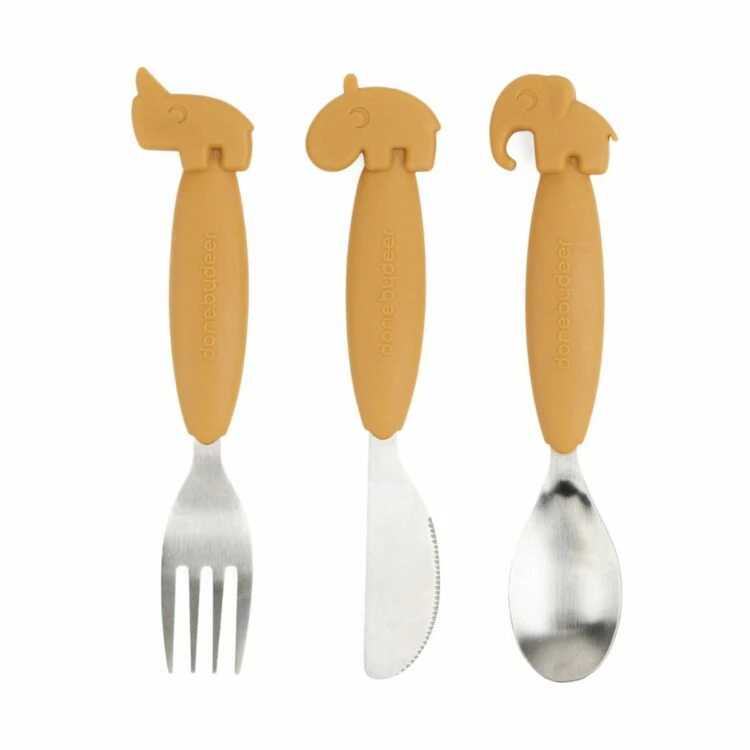 Met de Done by Deer bestekset bestaande uit een vork, mes en lepel kan je kindje op een handige manier leren eten. Het bestek is gemaakt van hoogwaardig en duurzaam materiaal, zodat het veel gebruikt kan worden. Daarnaast beschikt het bestek over een Easy Grip handvat en is het bestek vaatwasmachinebestendig.