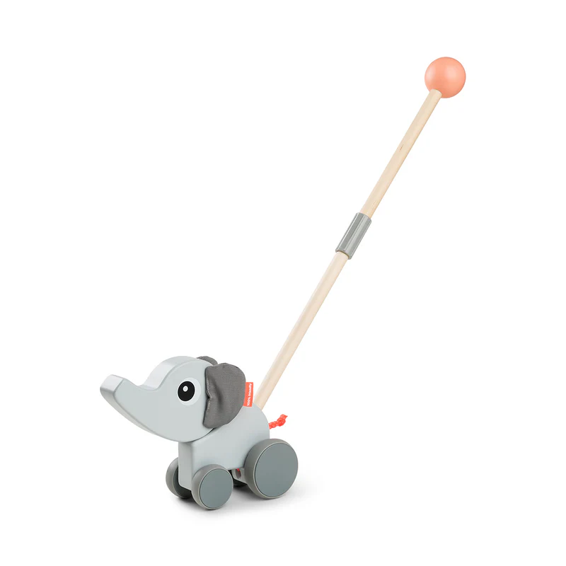 Ga op avontuur met Elphee duwspeelgoed in zachtgrijze kleur, aanbevolen vanaf 18 maanden of wanneer je kind zelfverzekerd loopt. Deze schattige metgezel motiveert lopen en fantasierijk spel terwijl Elphee’s hoofd wiebelt en het lichaam op en neer beweegt. Oren van textiel hebben een heerlijk gekreukt geluid, waardoor de zintuiglijke betrokkenheid wordt vergroot.